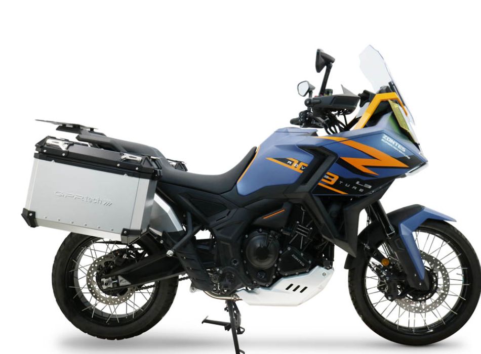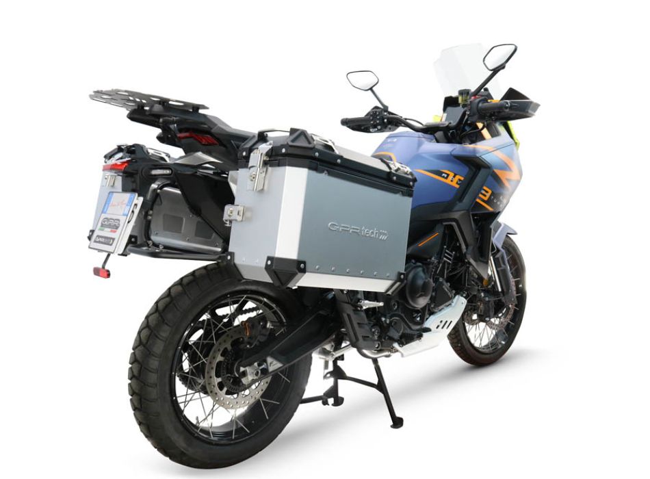 GPR TECH compatible with Zontes 703 F 2025/2026 GPR TECH Pair of side cases aluminum made, silver color with specific pannier holder Capacity 38 LT. + 38 LT.