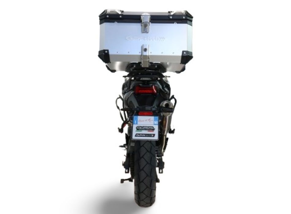 GPR TECH TOP CASE ALPI-TECH, capacity 45 Liters, 5052 aluminum made,with reinforced corners, Silver color with specific plate an hardware included to can mount the product on original rear rack without any modification. This Top Case allow to place an Enduro helmet. The GPR TECH top case includes a washable and removable lining for helmet protection. The backrest protection amd the removable object bag be purchased separately.